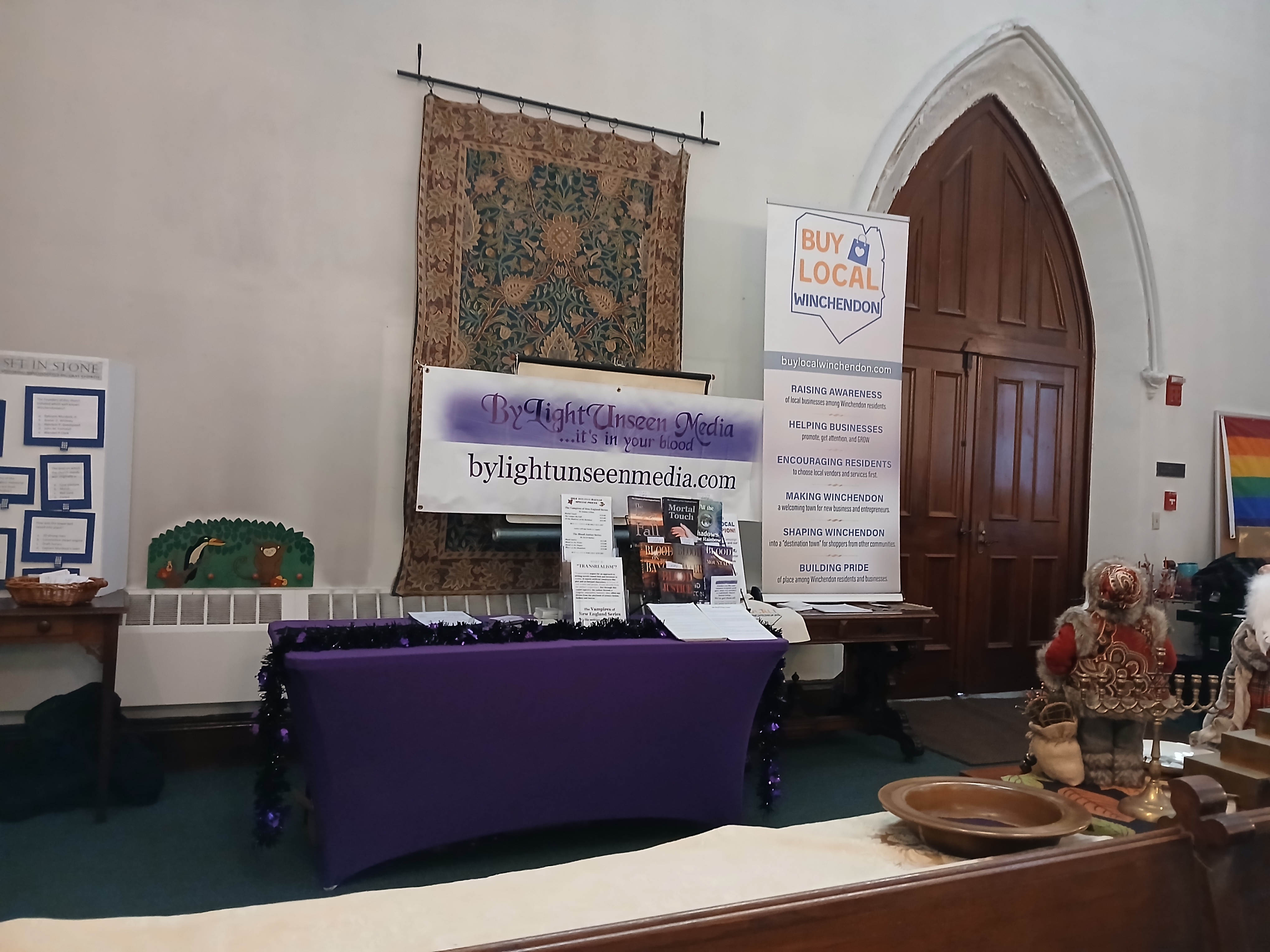 Buy Local shares a space with local business By Light Unseen Media LLC at the December, 2024 UUCW Holiday Bazaar